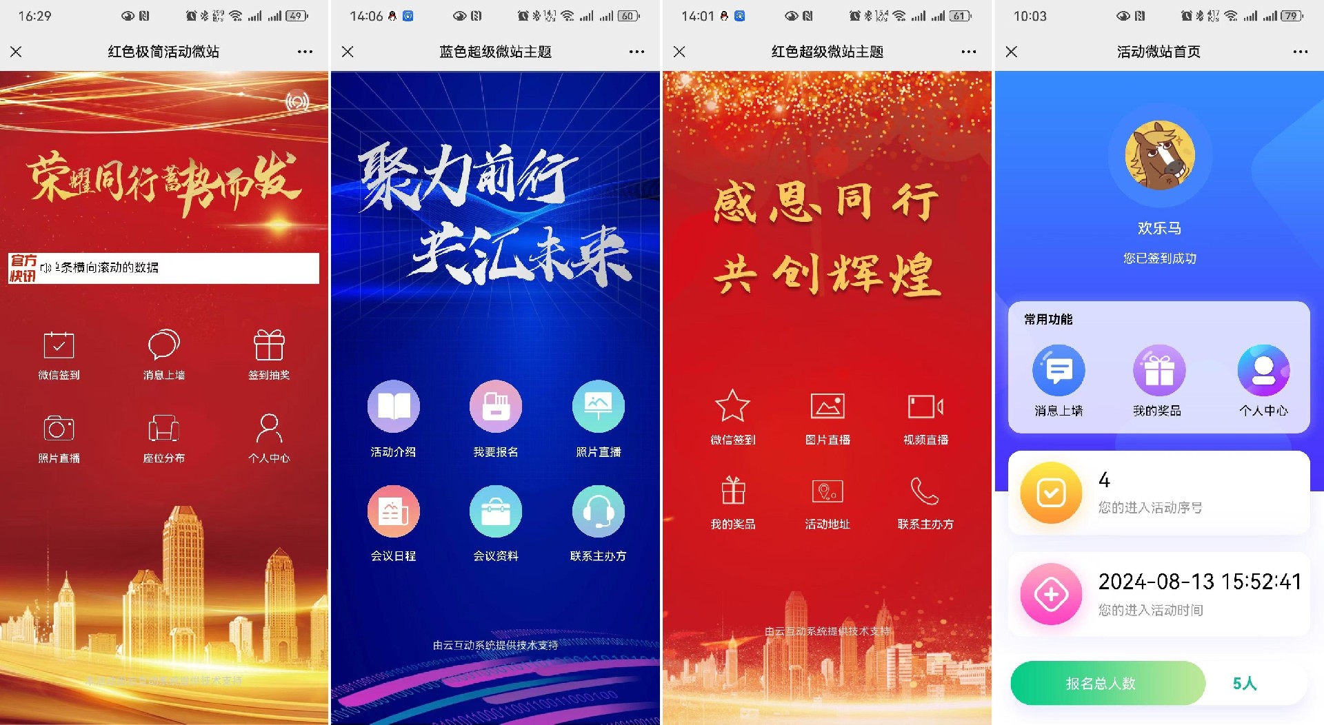 江津云互动系统最新发布的智能会务超级微站系统已经发布预览版,通过智能会务系统,可以快速搭建智能会议微站平台,实现信息展示、活动签到报名、实时消息互动、现场签到抽奖、会议信息实时输出、中奖信息/座位信息实时查询等互动功能。