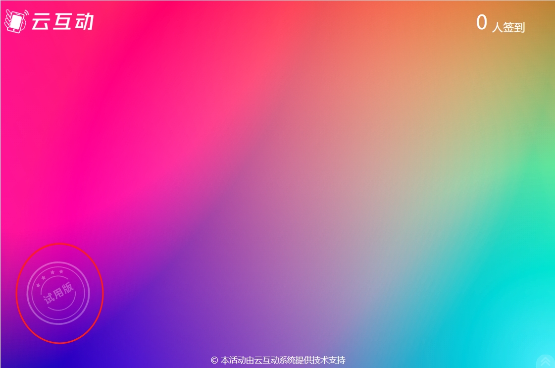 因此在最新版的江津云互动系统中,我们为测试版活动增加了“试用版”的水印,该标识意味着该活动为测试活动,还未购买发布,以防出错。