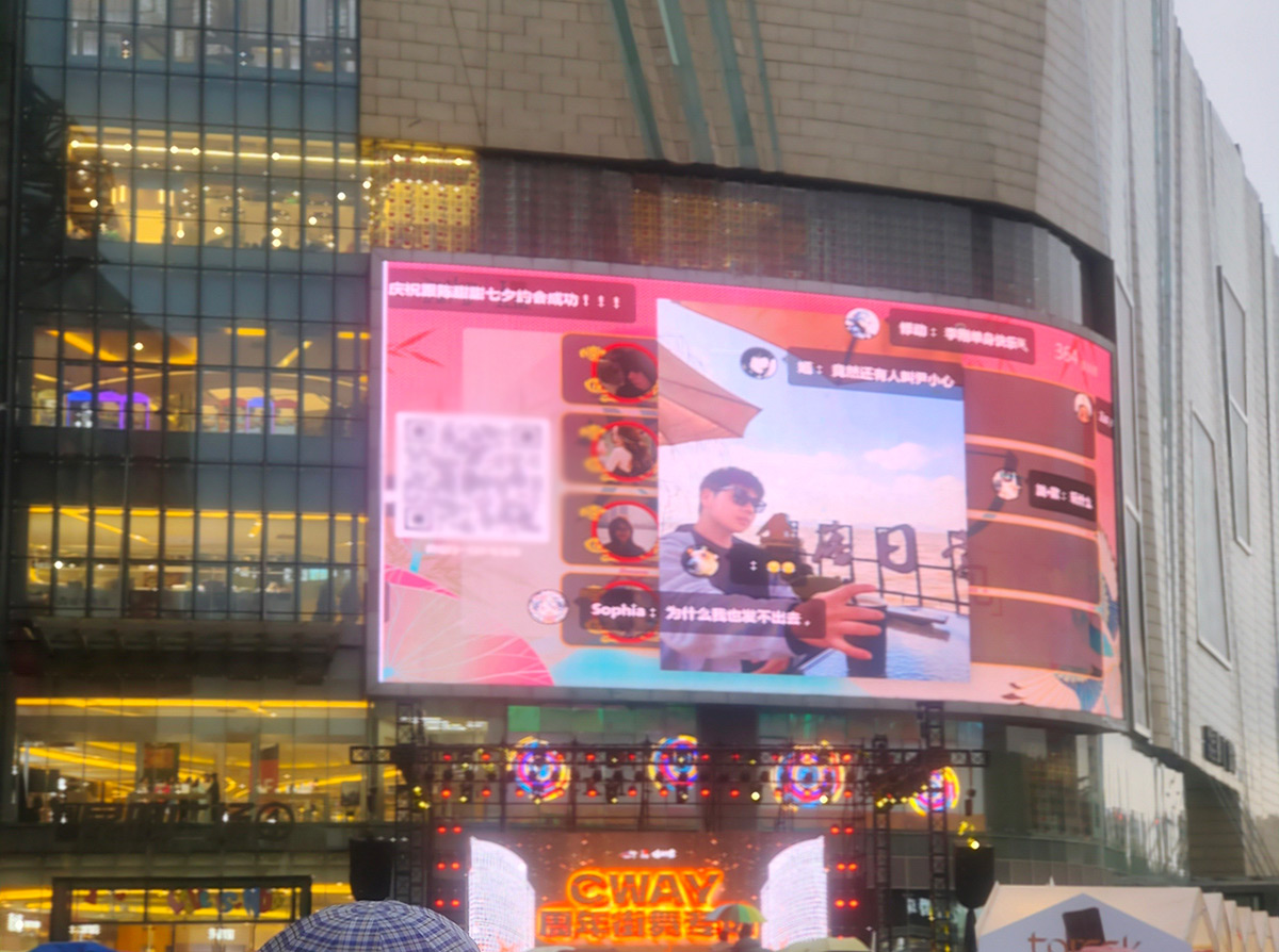 在七夕活动中江津云互动系统消息上墙功能被广泛用在各地七夕活动中的告白大屏中使用。