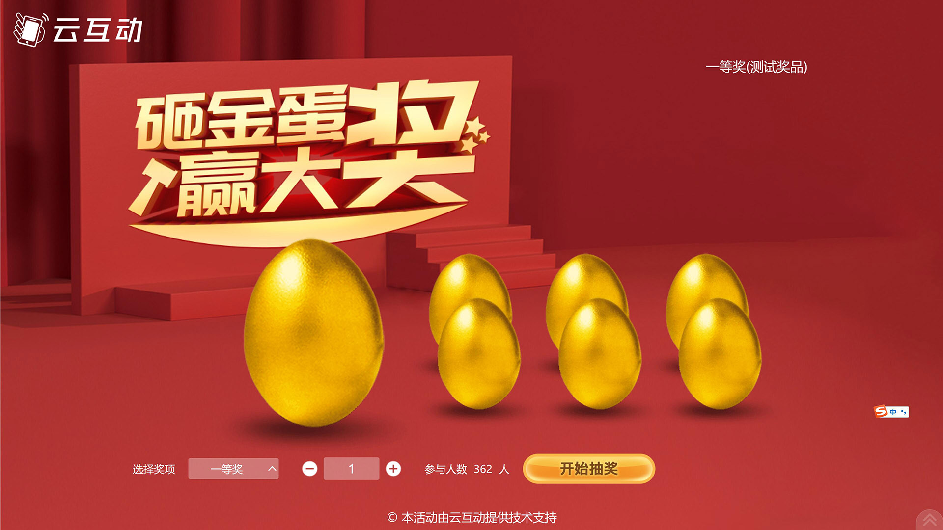 砸金蛋抽奖是江津云互动系统抽奖功能中可以在现场大屏幕上模拟传统砸金蛋抽奖的应用。可以省去准备金蛋实物等诸多环节。
