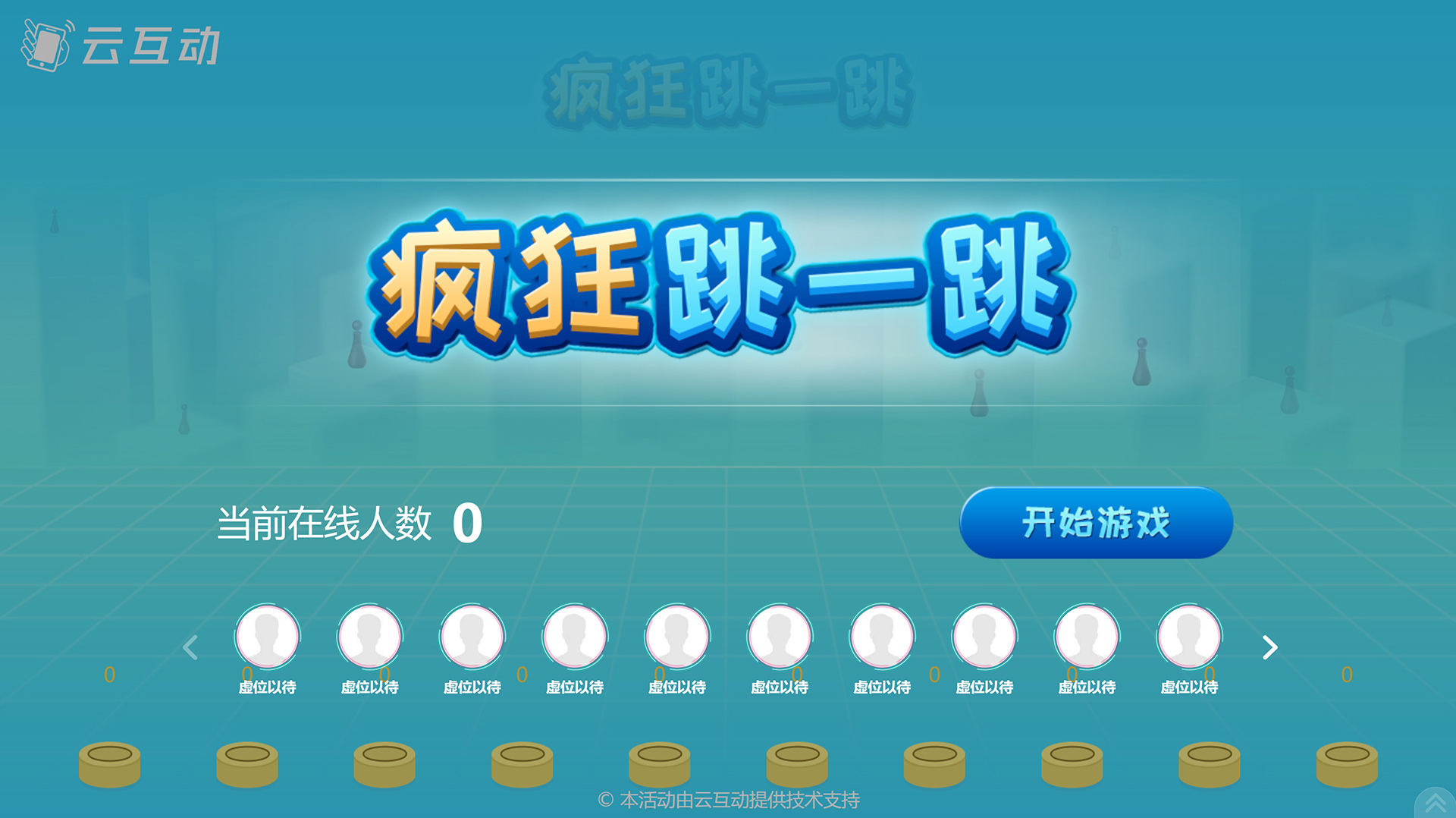 江津云互动系统的疯狂跳一跳竞技游戏可以将全场用户一起扫码加入跳一跳游戏比拼,并且在大屏幕上实时显示前十名用户的排行榜,这样让现场气氛更热烈,用户参与更刺激。