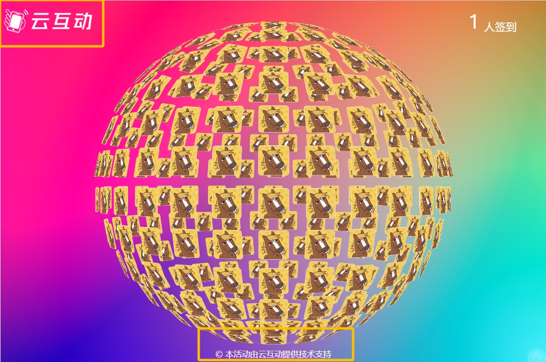 在使用江津云互动系统创建互动活动后,大屏幕页面默认会带有江津云互动的logo、页面底部也会显示“© 本活动由江津云互动系统提供技术支持”的字样,